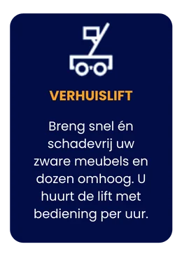 Onze verhuislift huur service biedt de nodige assistentie om zware en omvangrijke items veilig en efficiënt te verplaatsen. Wij staan garant voor een vlotte en zorgeloze verhuiservaring.